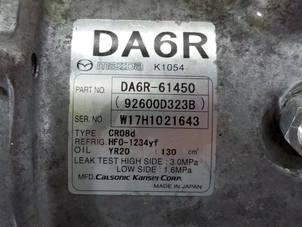 Air conditioning compressor MAZDA CX-3 (DK) [01.2015 - ...] DA6R61450 | 92600D323B | W17H1021643 TELEPECAS Reference: 11332596 10 Out 2024 |