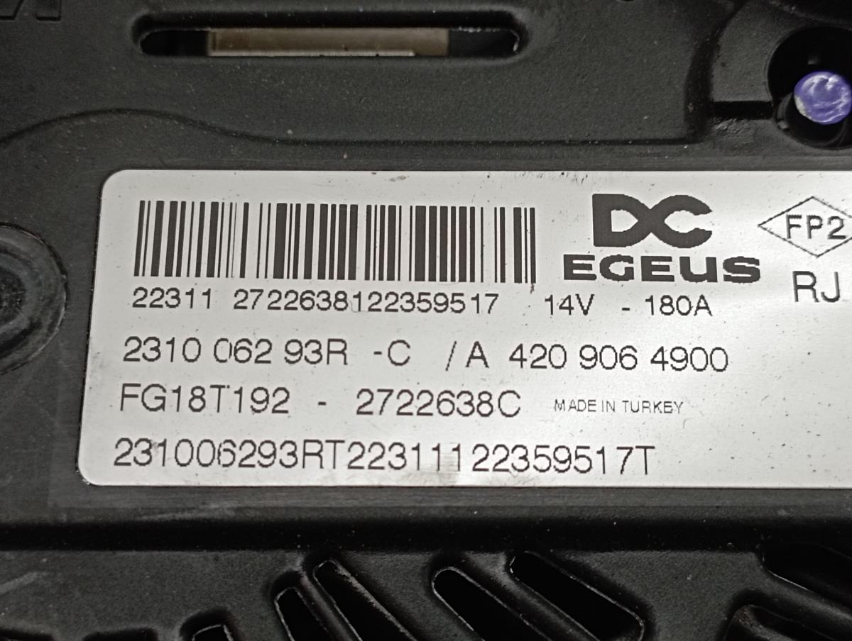 Alternator RENAULT CLIO V (BF_) | 19 - 231006293R / A4209064900 | 14V / 180A TELEPECAS Reference: 10642529 ID Stock: 20450988 07 Jul 2024 |