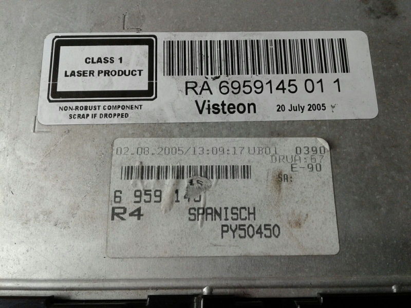 CD Car Stereo System BMW 3 (E90) [02.2004 - 02.2012] 6512 6959145 | VP4KAF-18C838-GC | 65126959145 TELEPECAS Reference: 677353 10 Out 2024 |
