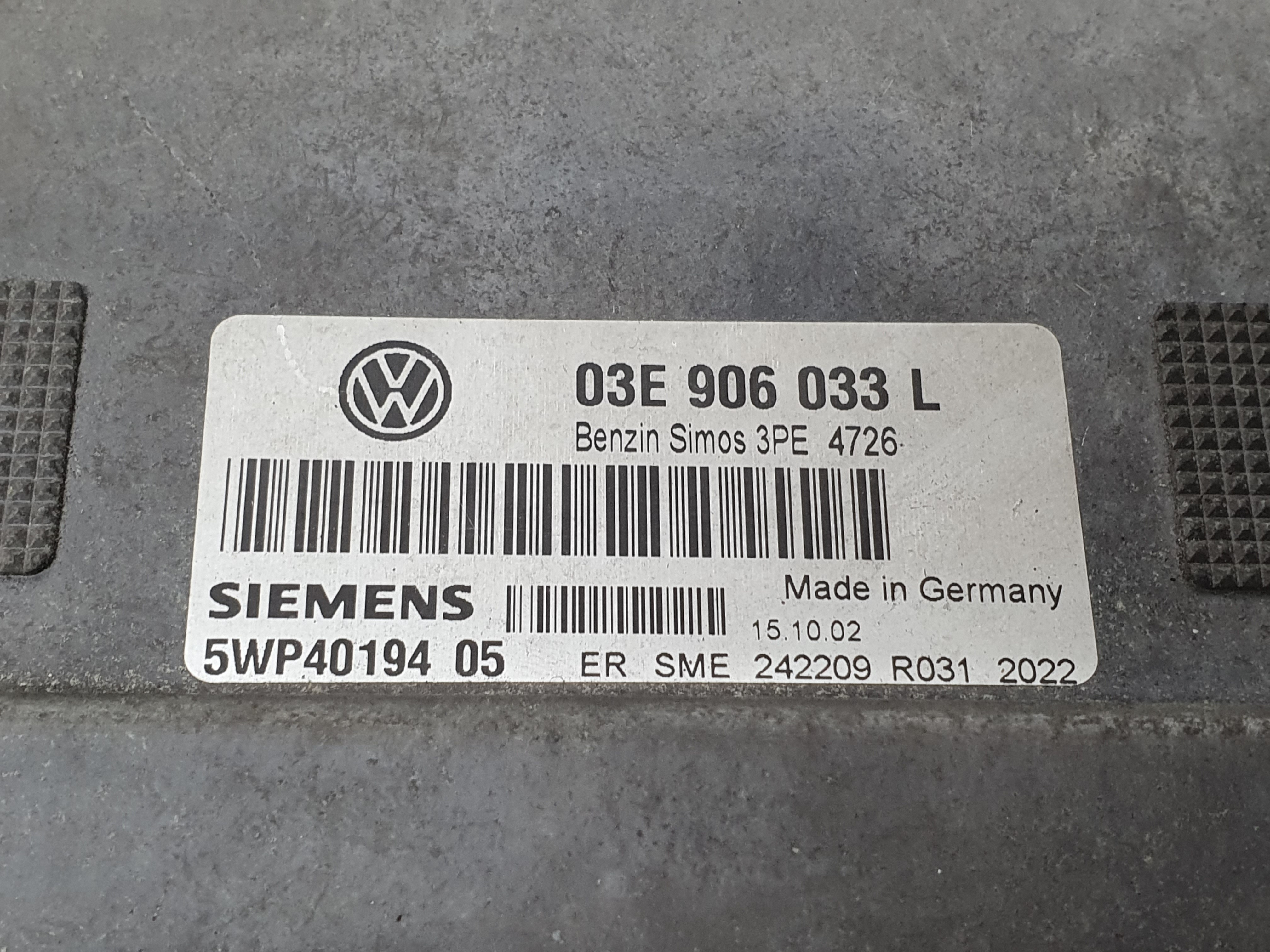 CENTRAL UNIT / ENGINE MODULE VOLKSWAGEN POLO (9N_) | 01 - 12 03E906033L TELEPECAS Reference: 10134571 ID Stock: 20248383 23 Mai 2024 |