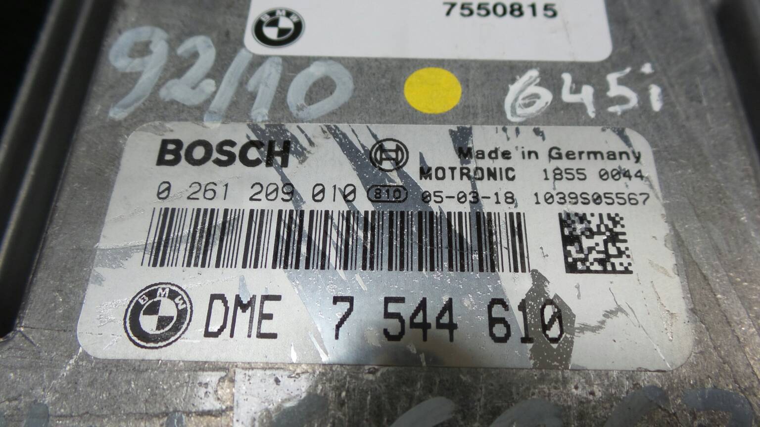 Engine Control Unit (ECU) BMW 6 (E63) [09.2003 - 12.2010] N62 B44 A | DME 7 544 610 0261209010 | 92/10 | 35460 TELEPECAS Reference: 476781 ID Stock: 122218 10 Out 2024 |