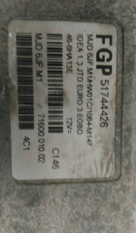 Engine Module FIAT IDEA (350_) [12.2003 - ...] 51744426 | MJD6JFM1 TELEPECAS Reference: 696462 28 Set 2024 |