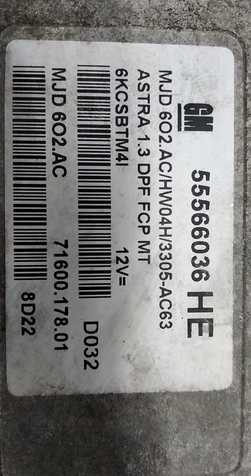 Engine Module OPEL ASTRA H (A04) [01.2004 - 05.2014] 55566036HE | MJD6O2AC | 7160017801 TELEPECAS Reference: 404655 ID Stock: 20322456 27 Set 2024 |