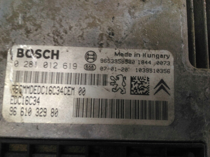 Engine Module PEUGEOT PARTNER Box Body/MPV [04.2008 - ...] 0281012619 | 9661032980 | EDC16C34 TELEPECAS Reference: 1100759 ID Stock: 20262510 28 Set 2024 |