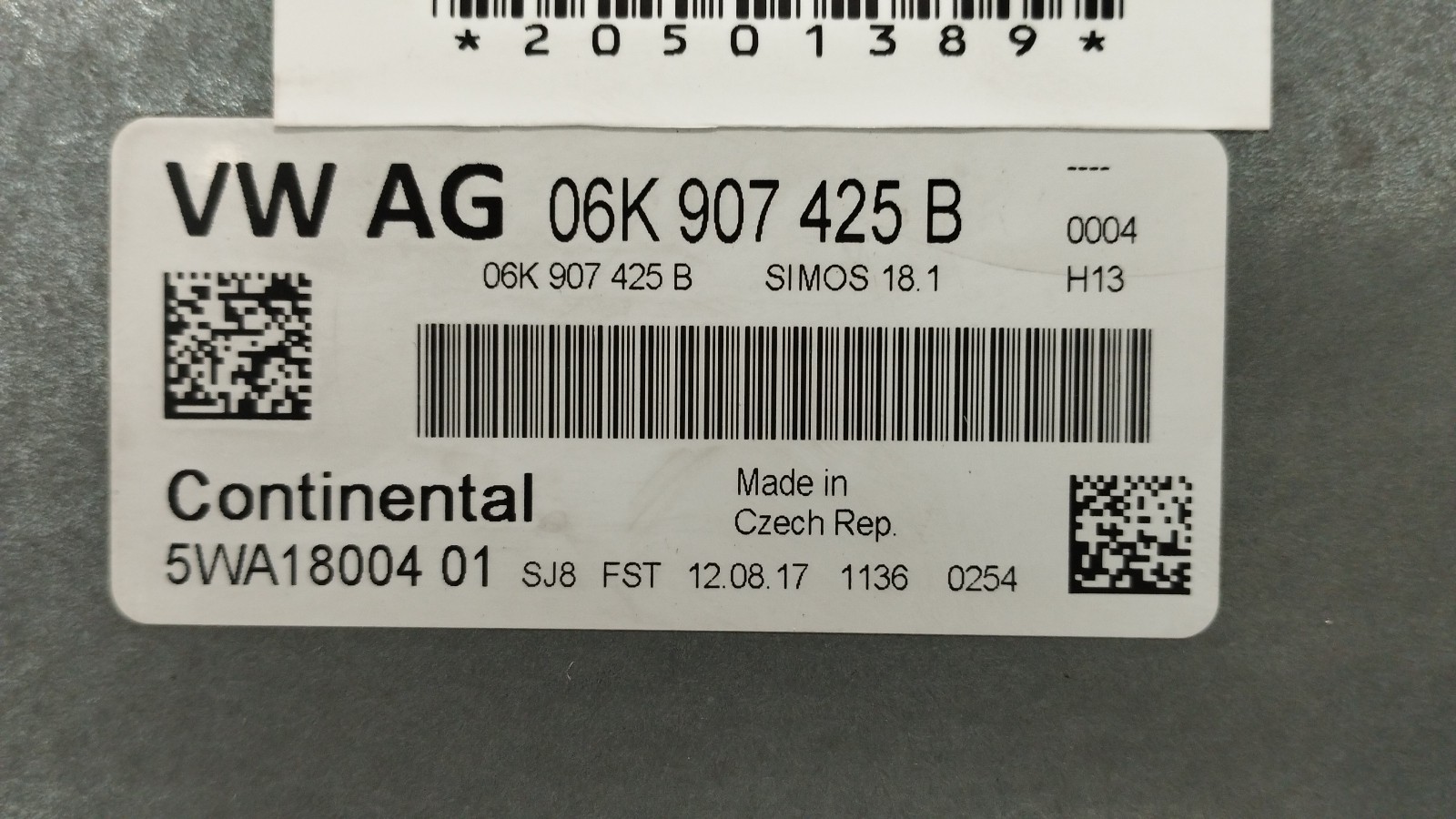 Engine Module VOLKSWAGEN GOLF VII (5G1, BQ1, BE1, BE2) [08.2012 - 03.2021] 06K907425B | 5WA1800401 | SIMOS18.3 TELEPECAS Reference: 11201127 03 Out 2024 |