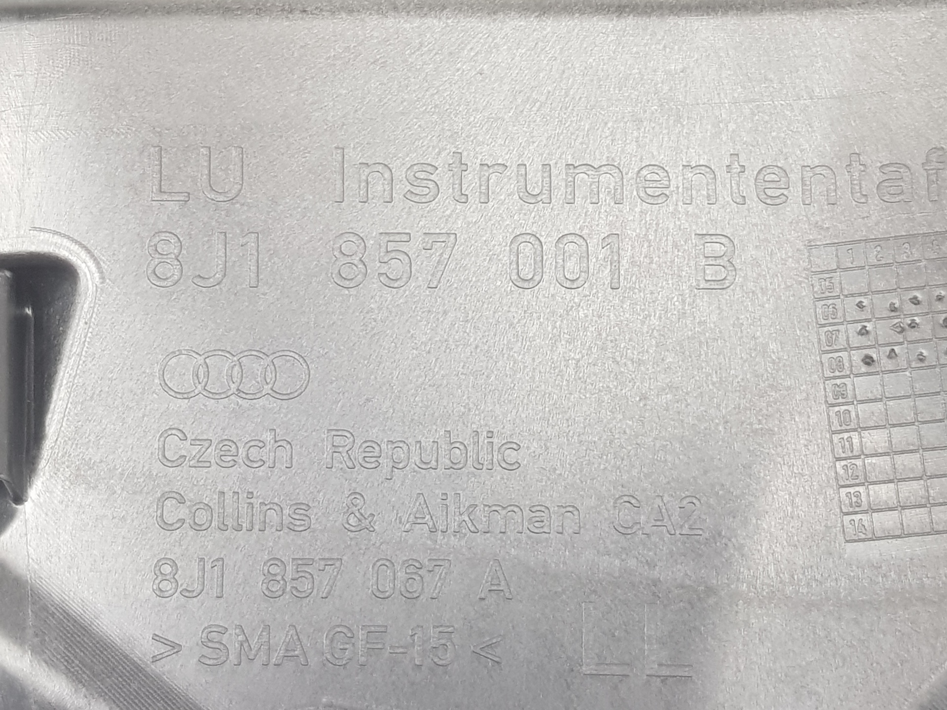 | Notes | SALPICADERO: 8J1857001B ANILLO AIRBAG:1K0959653D AIRBAG CONDUCTOR: 8J0880201N AIRBAG ACOMPAÑANTE: 8J0880202B CENTRALITA AIRBAG: 8J0959655 PRETENSORES: 8J8857705D |