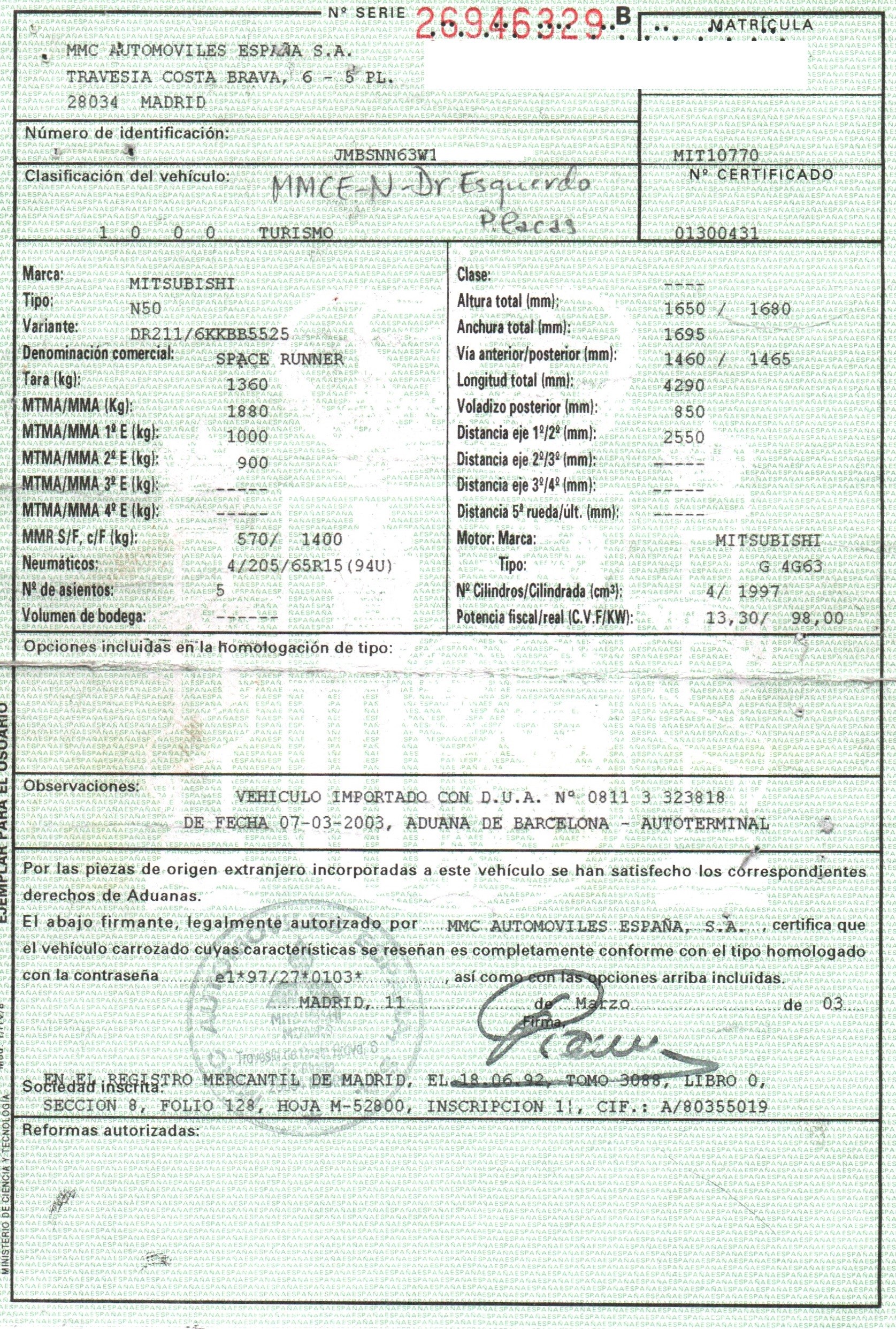 MANDO RETROVISOR MITSUBISHI SPACE RUNNER (N60) MR190956 TELEPECAS Reference: 12703283 02 Jun 2022 |