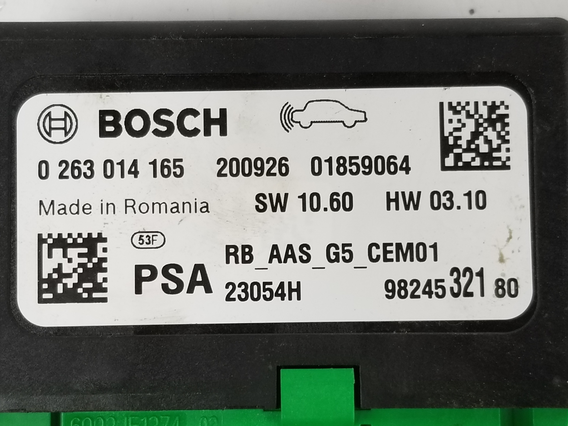| Notes | 9824532180 BOSCH 0263014165 200926 01859064 |