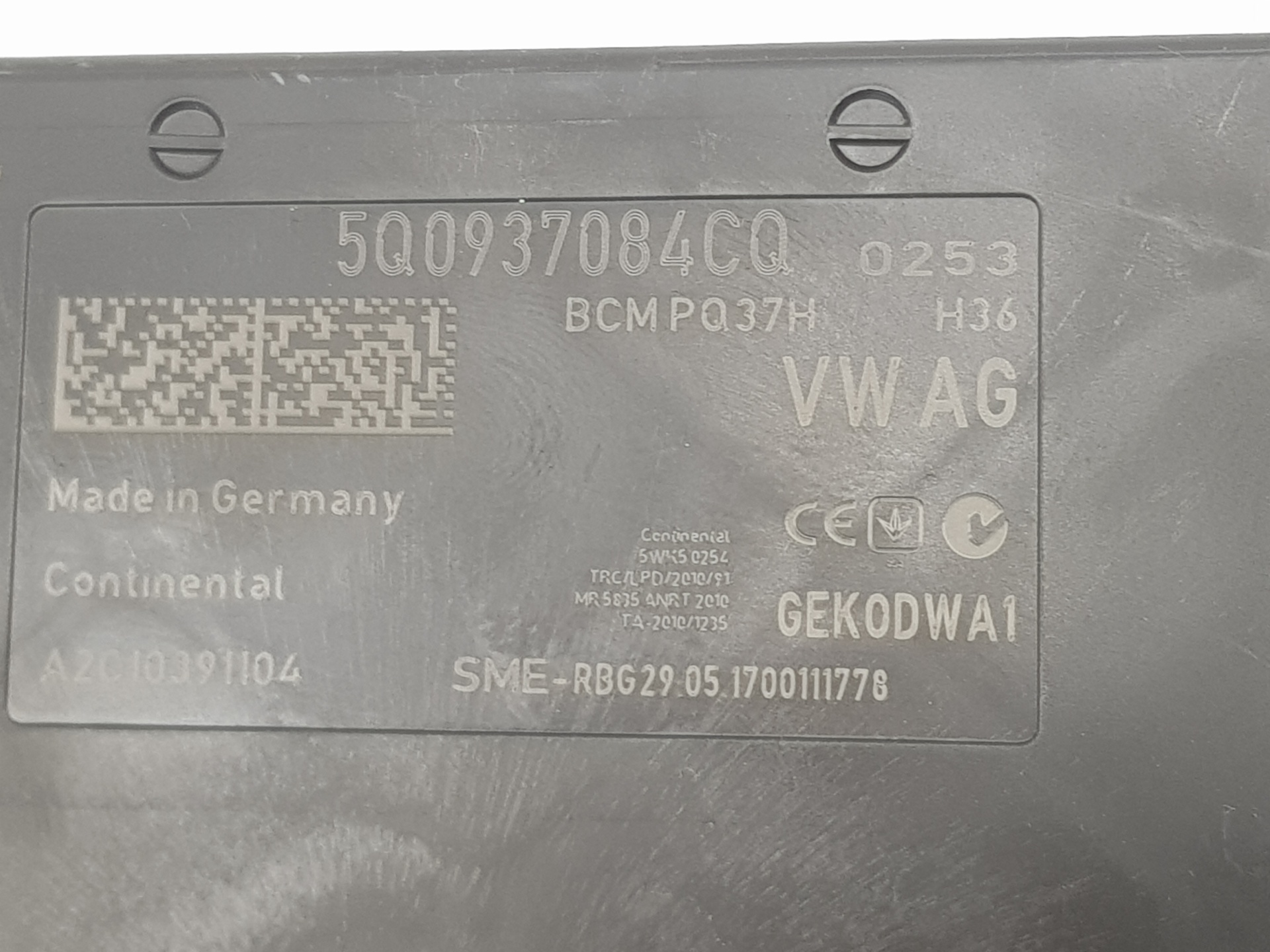 | Notes | Unidad control red de a bordo 5Q0937084CQ BCMP037H A2C10391104 |