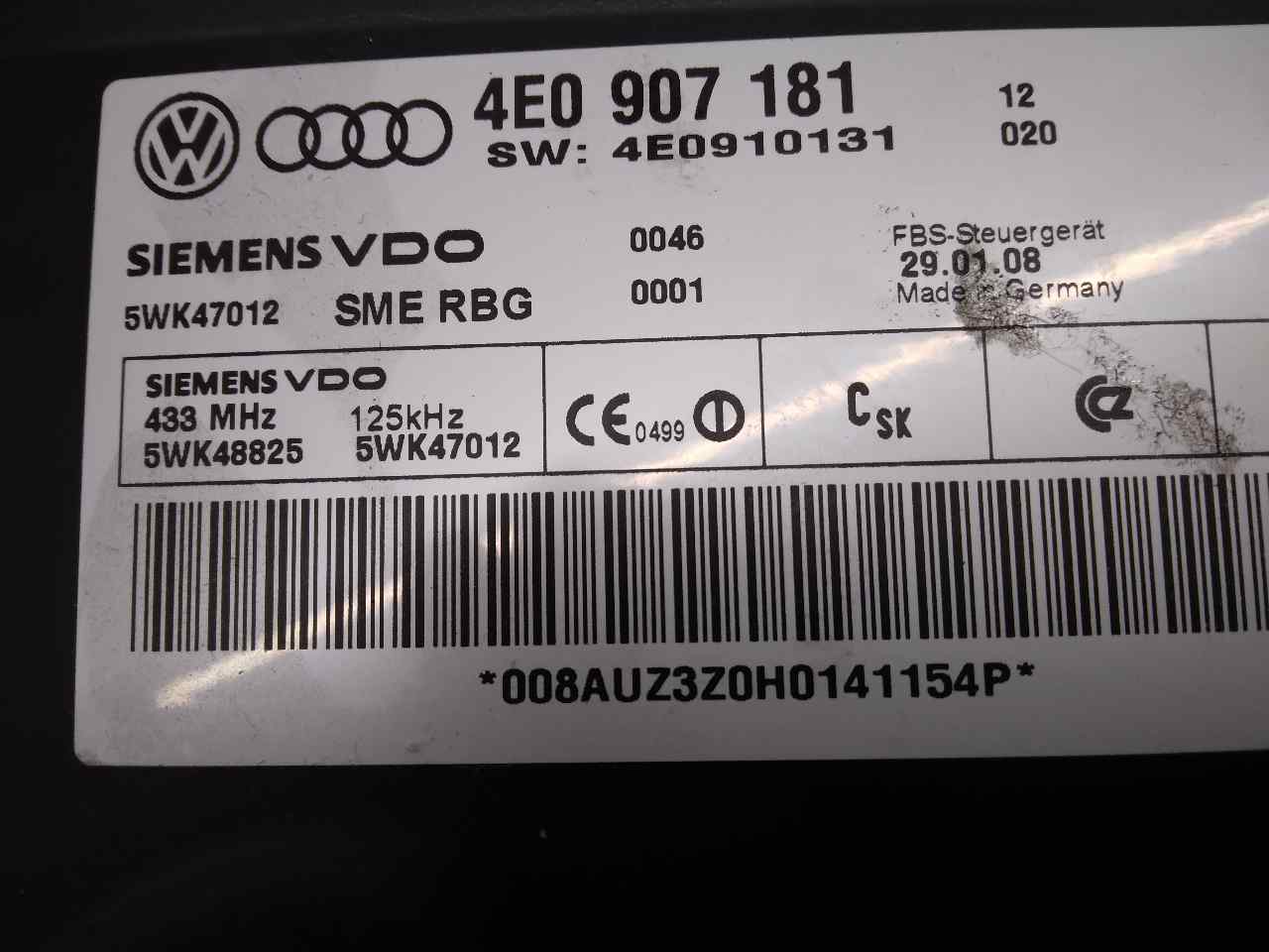 MODULO ELECTRONICO AUDI A8 (4E2) 4E0907181 | 5WK47012 | SIEMENS TELEPECAS Reference: 12499689 22 Dez 2022 |