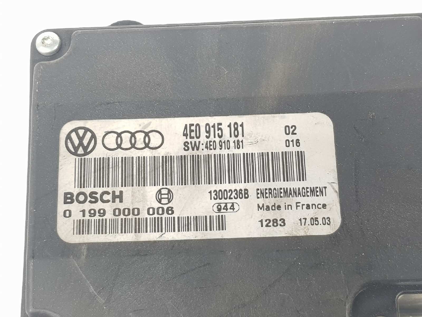 MODULO ELECTRONICO AUDI A8 4E0915181 | 0199000006 | 4E0915181 TELEPECAS Reference: 6552828 16 Set 2021 |