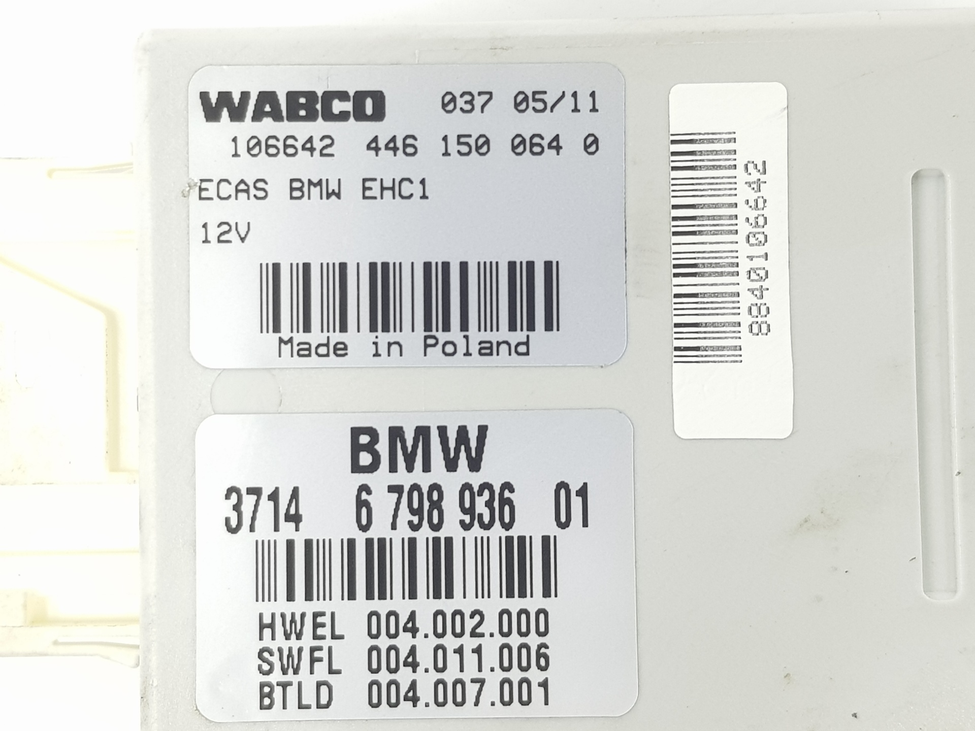 | Notes | Unidad de control, suspensión neumática 37146798936 6798936 WABCO 106642446150 37146799676 37146857942 37146860385 |