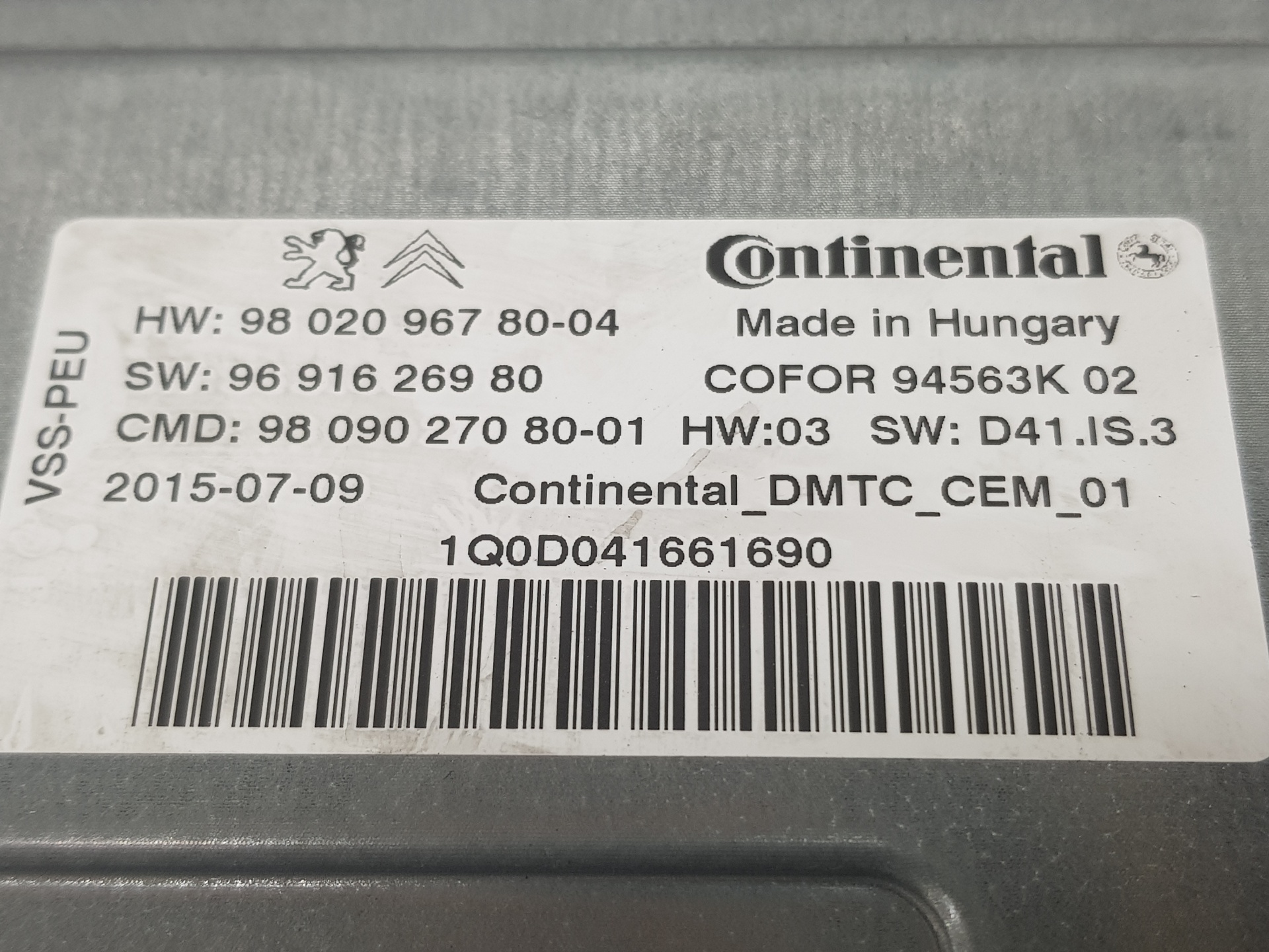MODULO ELECTRONICO DS 5 9802096780 TELEPECAS Reference: 10976950 29 Nov 2023 |