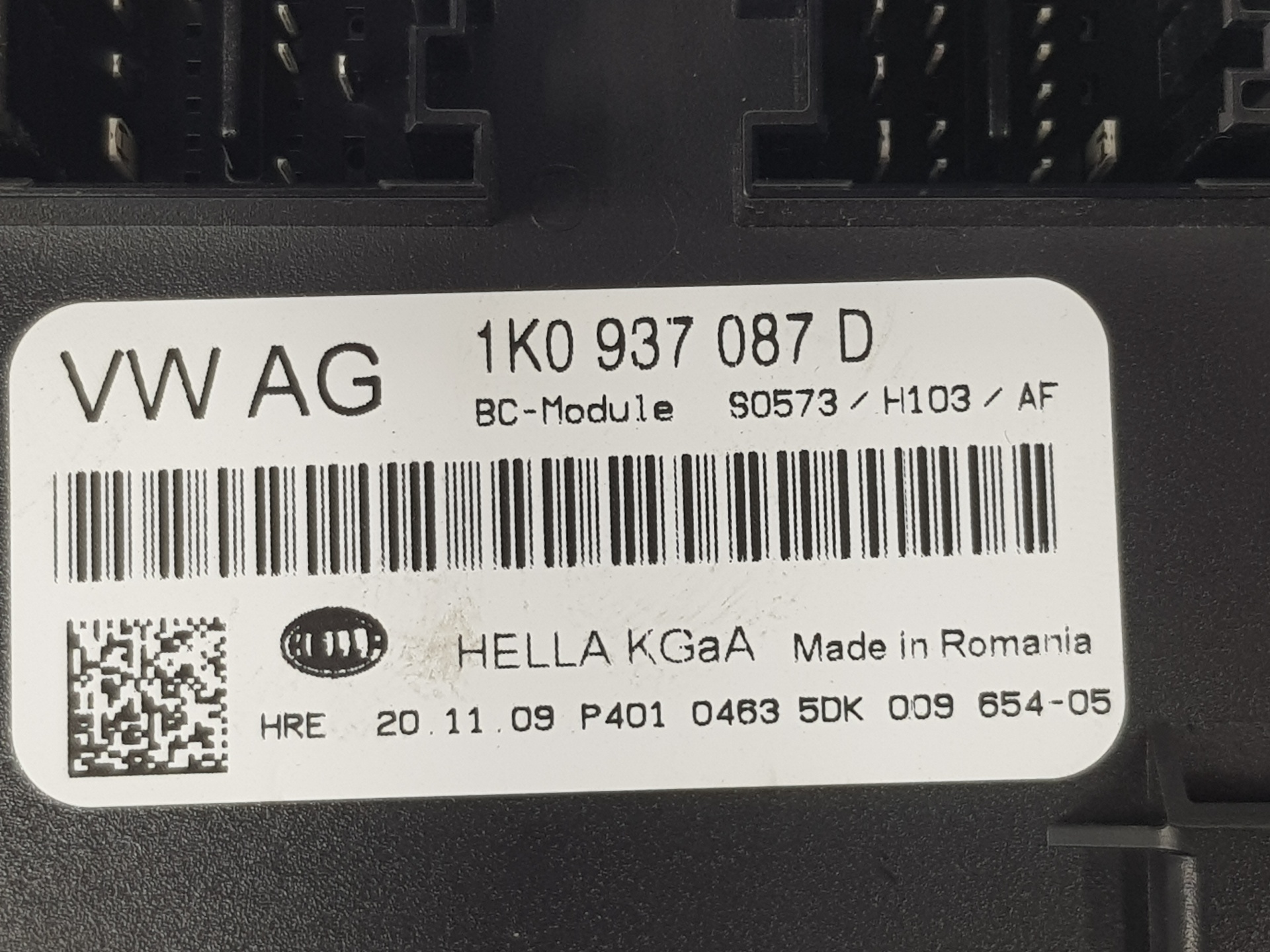 | Notes | Unidad de control (BCM) para sistema confort y red a bordo 1K0937087D 5DK009654 |