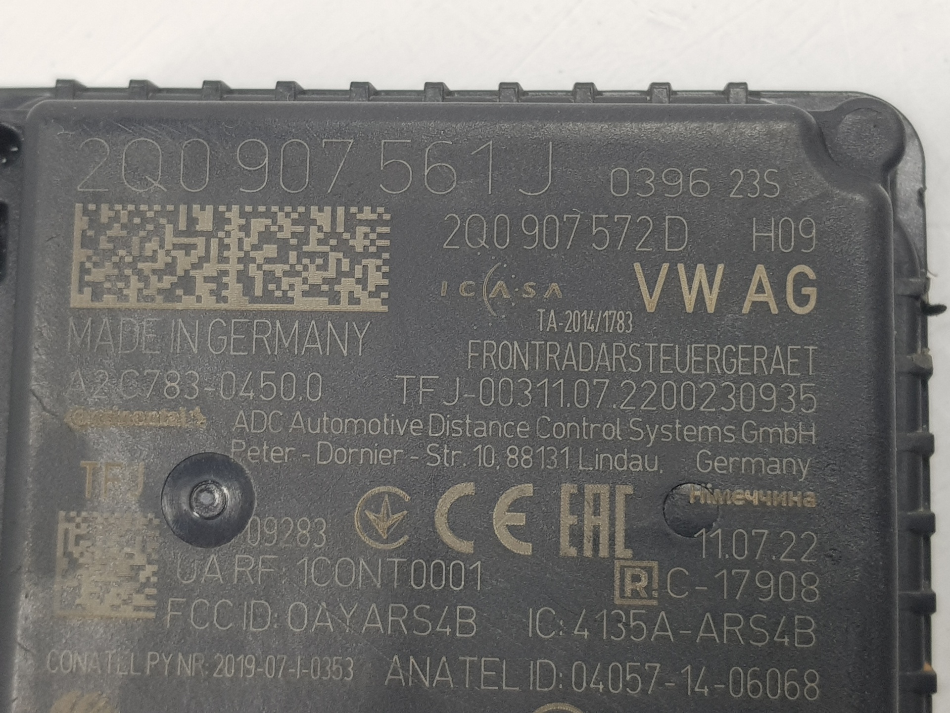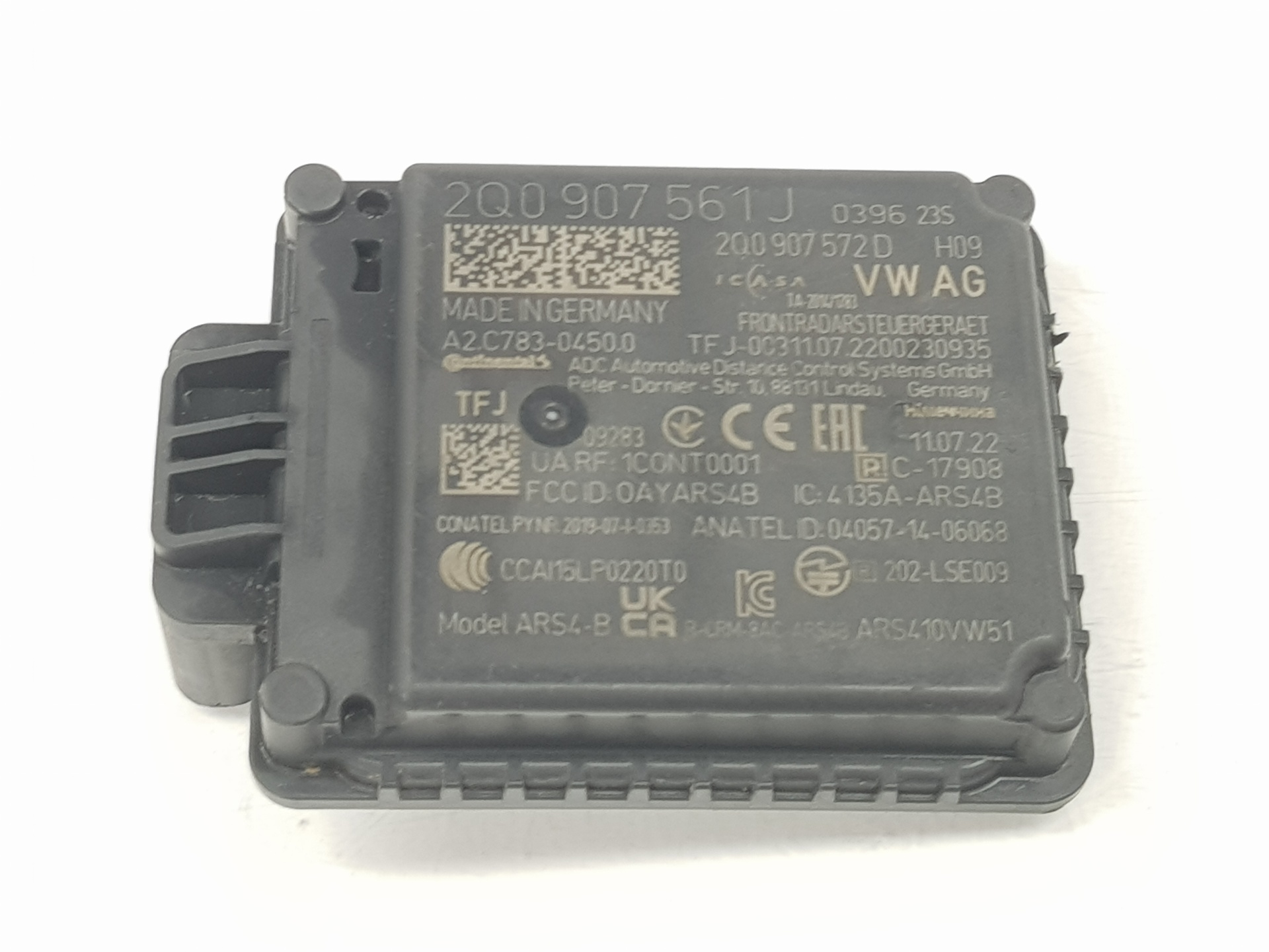 | Notes | unidad de control con software para regulacion de distancia y sensor de radar 2Q0907561J 2Q0907572D A2C78304500 |