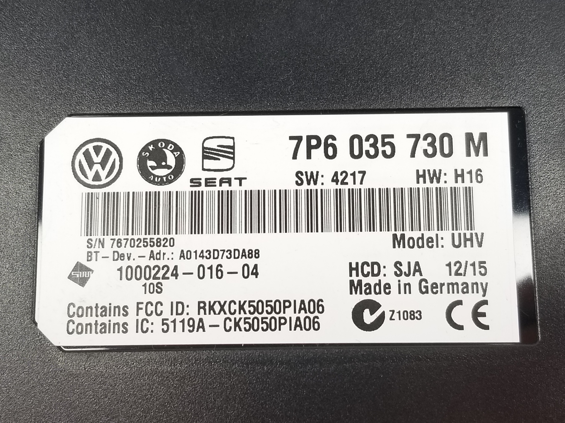 | Notes | 7P6035730M 7670255820 A0143D73DA88 1000224-016-04 RKXCK5050PIA6 |