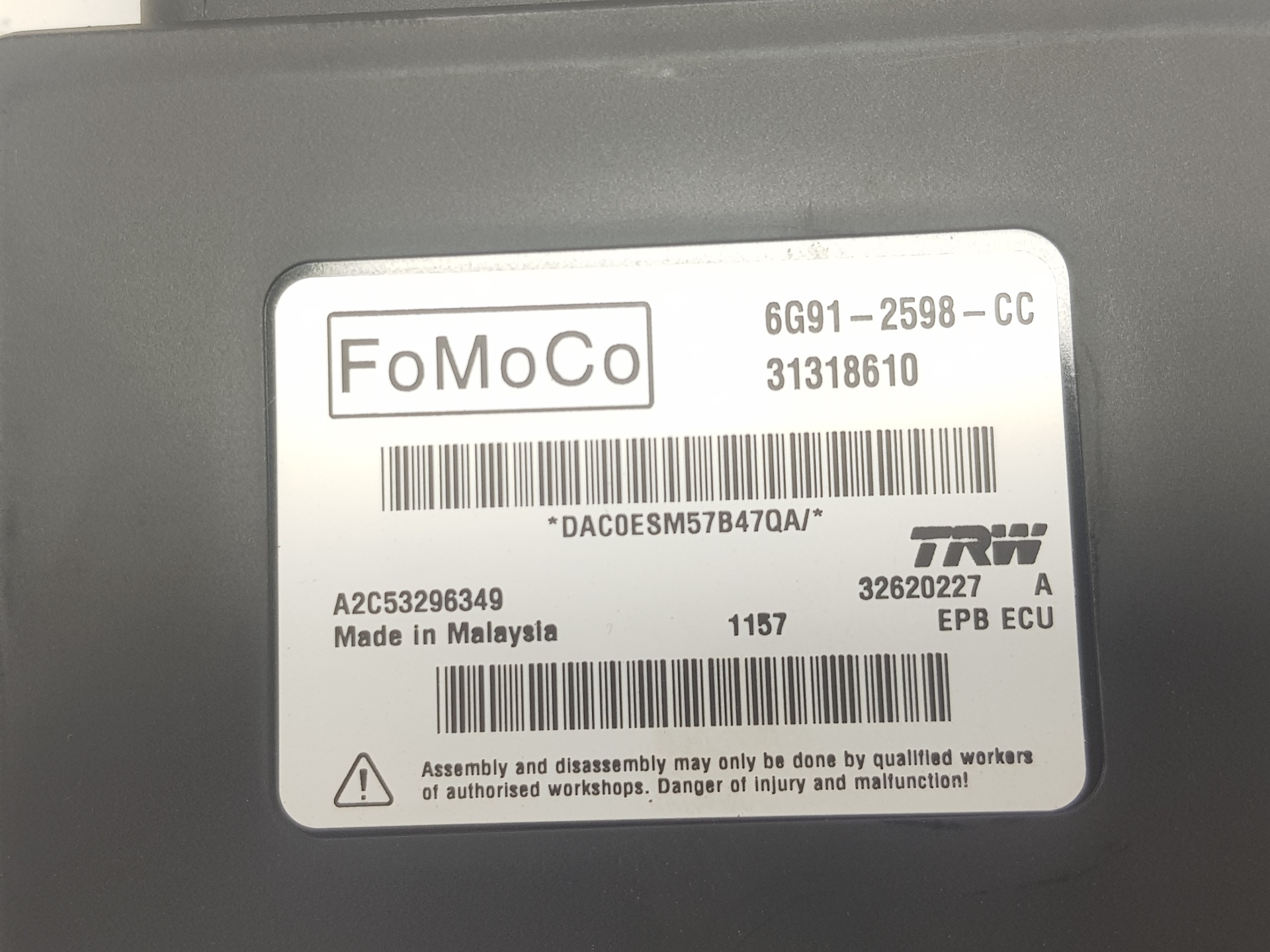 | Notes | 6G912598CC 31318610 A2C53296349 |