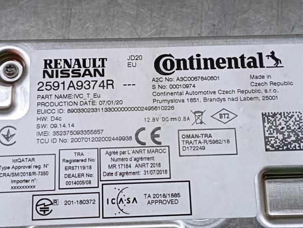 Multimedia Module RENAULT ZOE (BFM_) | 12 - 2591A9374R / A3C0067640601 TELEPECAS Reference: 10717659 ID Stock: 20452934 06 Jul 2024 |