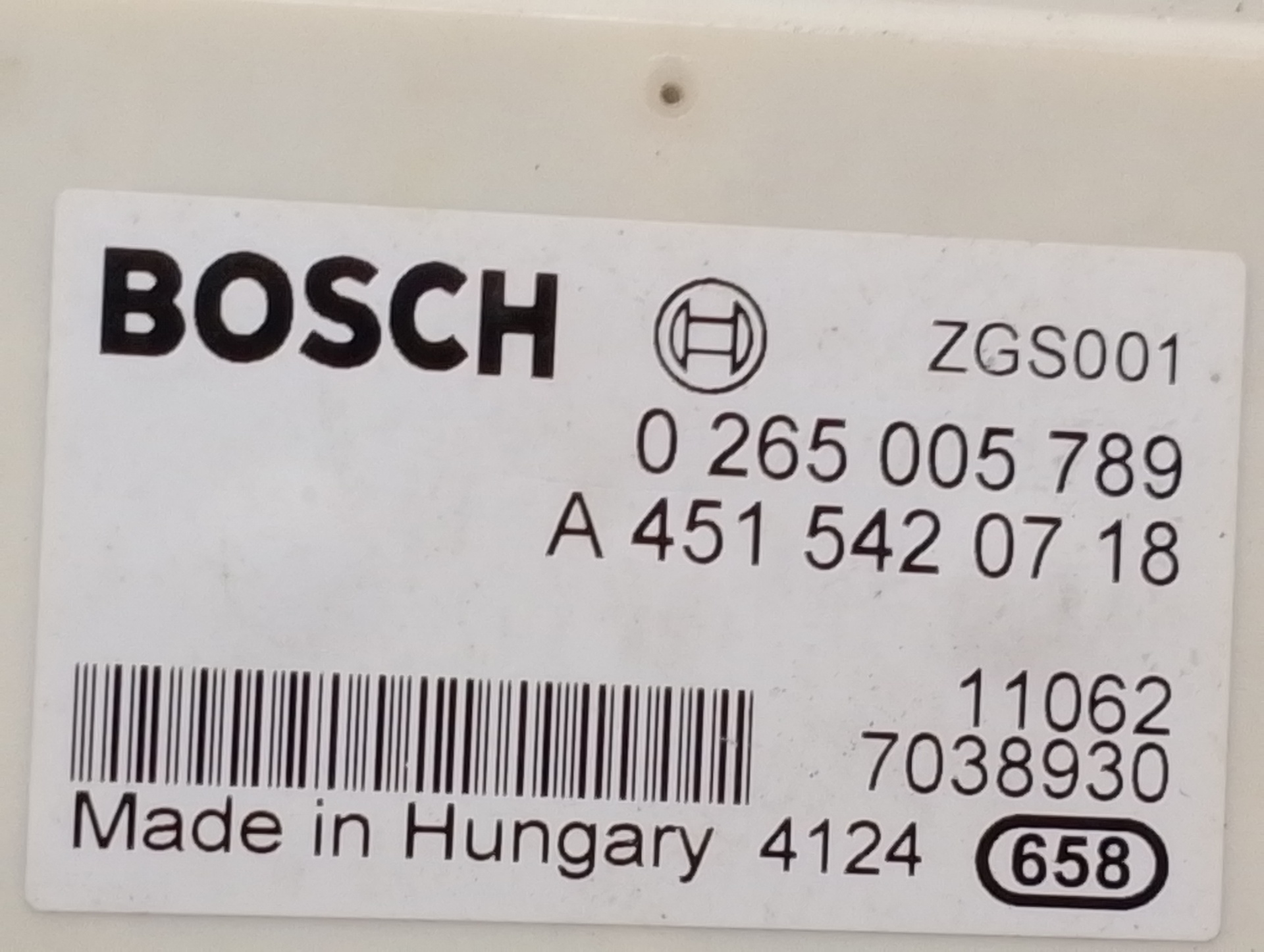 SENSOR SMART COUPE A4515420718 | 0265005789 | BOSCH TELEPECAS Reference: 11941137 13 Jul 2022 |